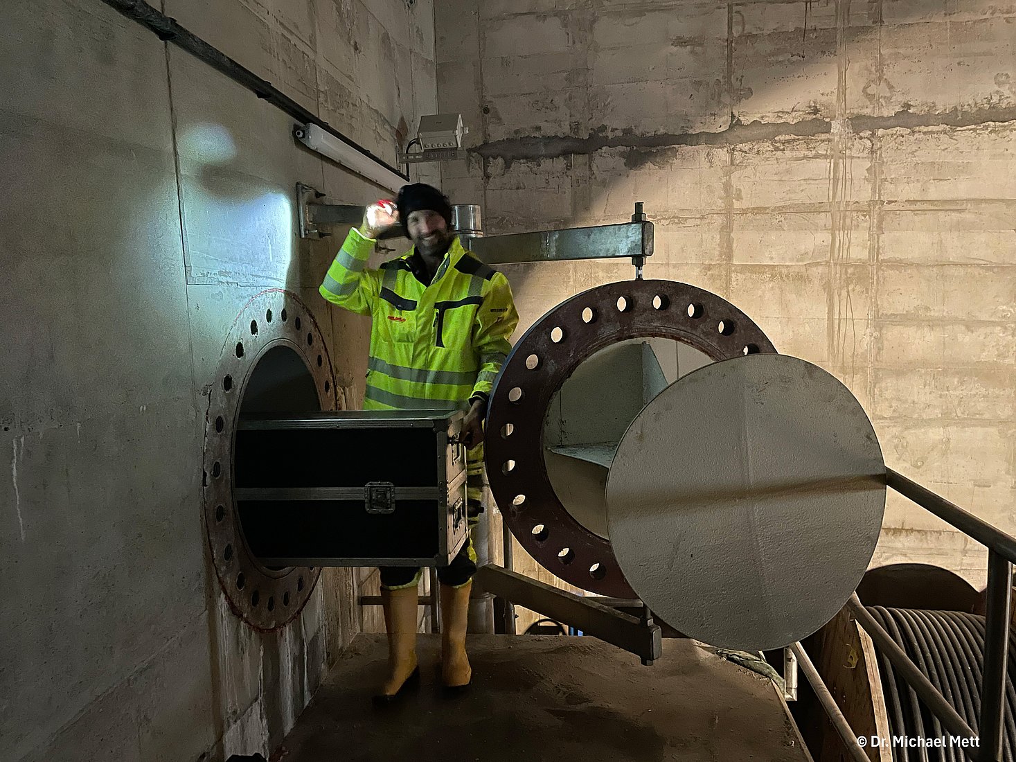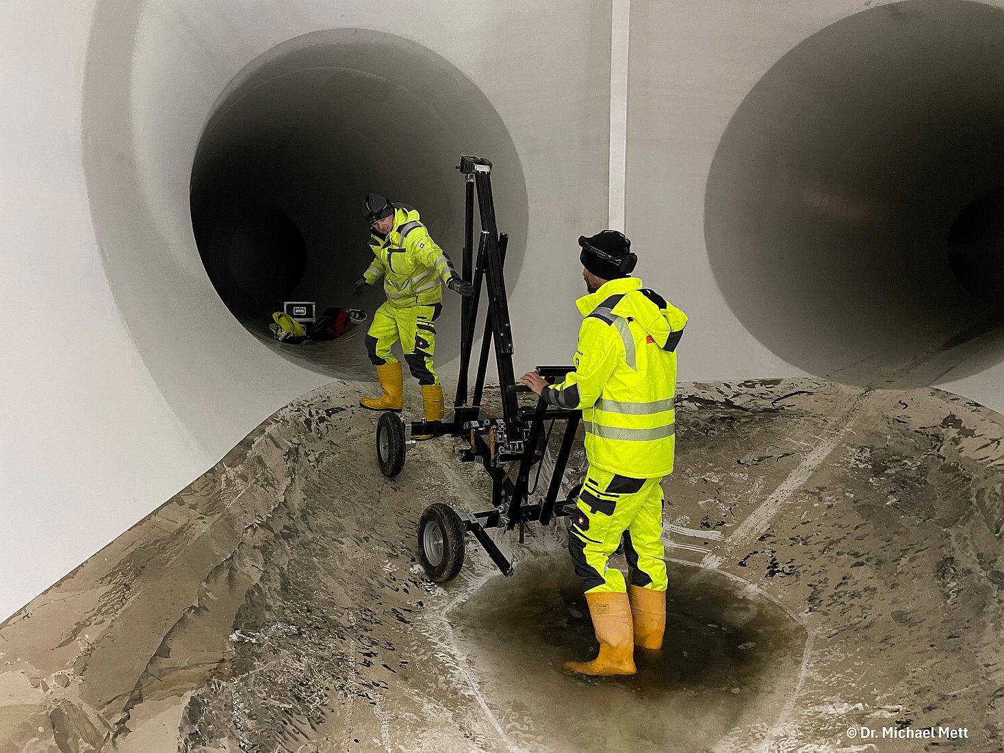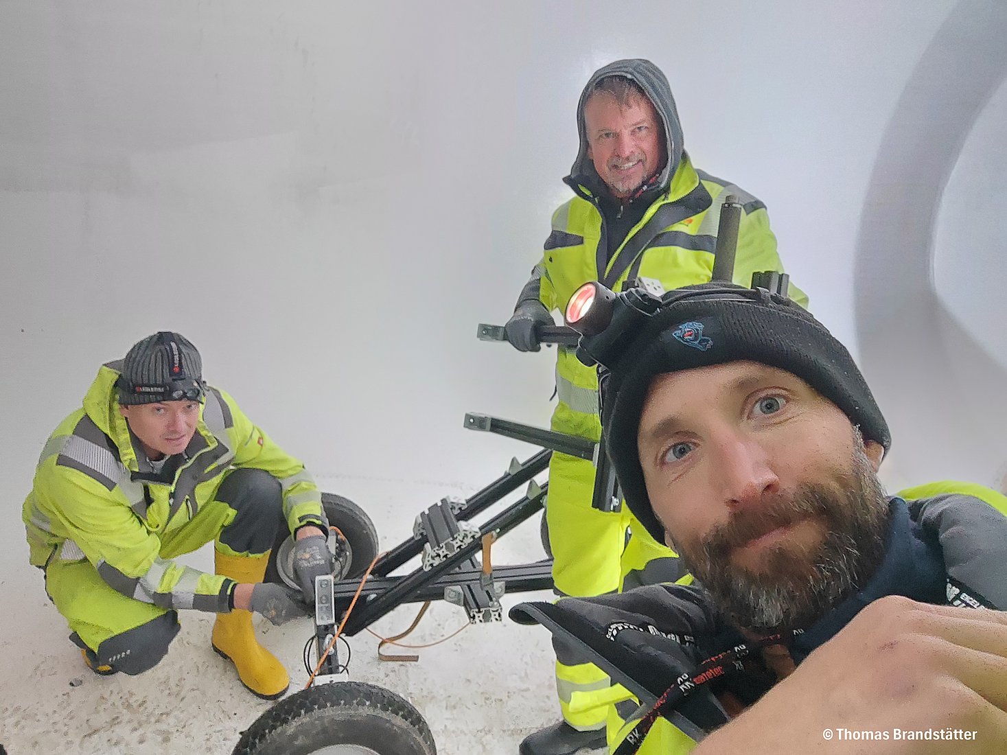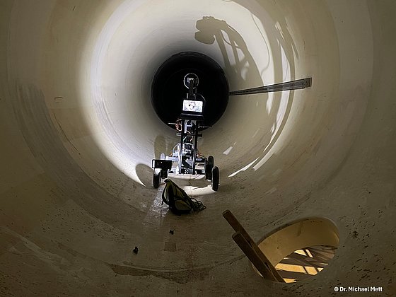 Die Messung wurde Mitte November 2025 talabwärts beginnend beim Absperrorgan am Weißsee durchgeführt. Hierfür musste die Altira in Einzelkomponenten zerlegt, über ein Mannloch in den Druckstollen eingebracht und vor Ort montiert, getestet und kalibriert werden. Aufgrund der steilen Neigung von ca. 15%, stellte insbesondere das Bremssystem erhöhte technische und sicherheitsrelevante Anforderungen. Nach Abschluss der Messung wurde das System am unteren Ende des Stollens wieder demontiert und über das Mannloch ausgebracht.